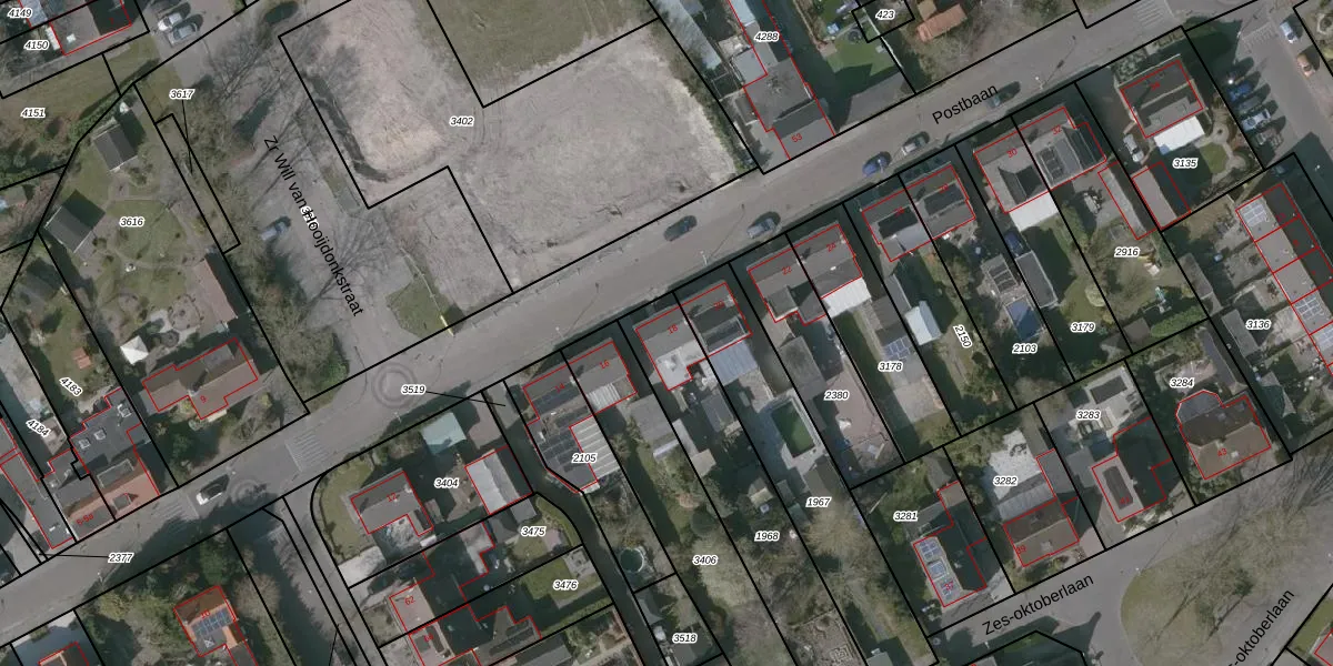 Het perceel waarop Postbaan 18 staat heeft een oppervlakte van 641 m². Dit is een groot perceel. De perceeloppervlakte wordt geregistreerd door het Kadaster. Gedetailleerde informatie over de maten van dit perceel kunt u vinden in het rapport Kadastrale kaart met maatvoering van Postbaan 18.