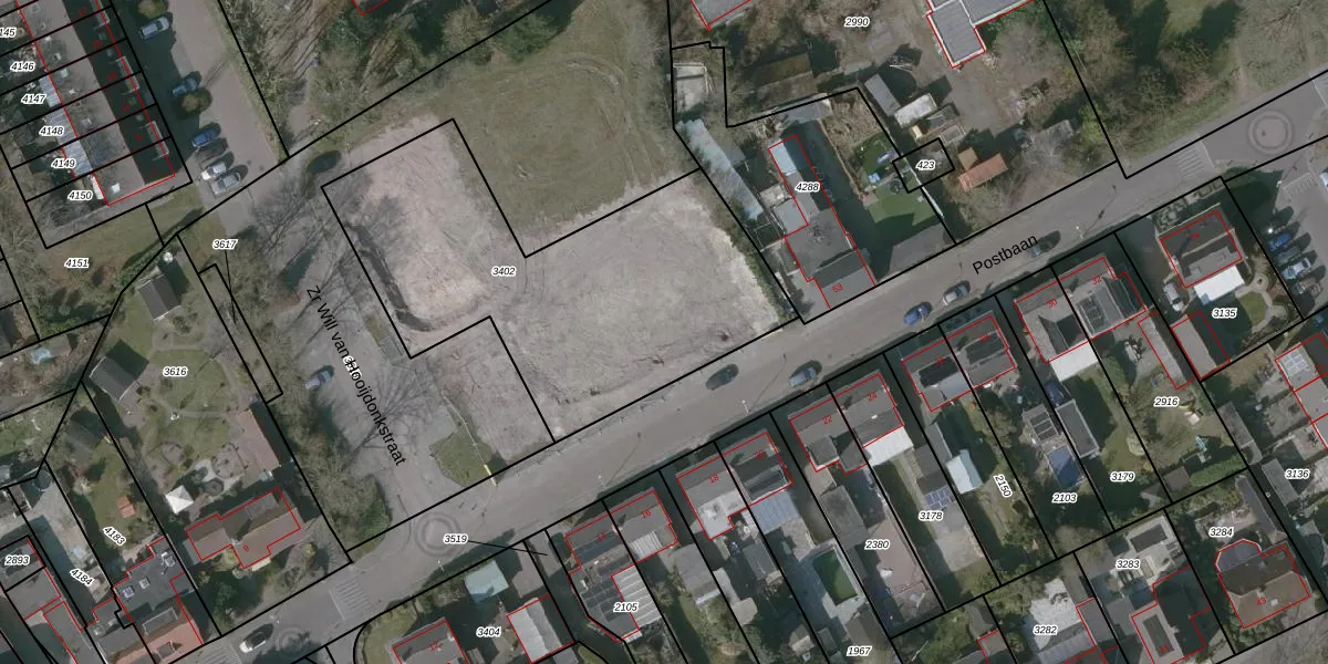 Het perceel waarop Postbaan 33 staat heeft een oppervlakte van 1680 m². Dit is een zeer groot perceel. De perceeloppervlakte wordt geregistreerd door het Kadaster. Gedetailleerde informatie over de maten van dit perceel kunt u vinden in het rapport Kadastrale kaart met maatvoering van Postbaan 33.