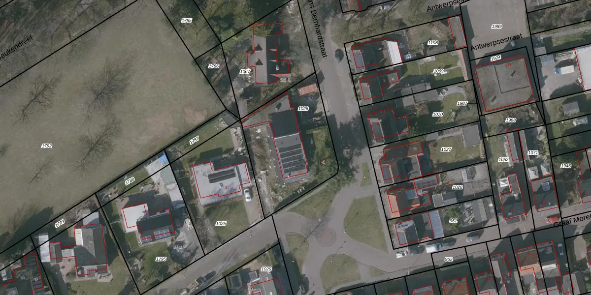 Prins Bernhardstraat 1 is gelegen op kadastraal perceel PTE00C1026. Deze kadastrale aanduiding is uniek en wordt gebruikt door het Kadaster om eigendomsrechten en andere zakelijke rechten vast te leggen. Het perceel maakt onderdeel uit van de kadastrale gemeente Putte.