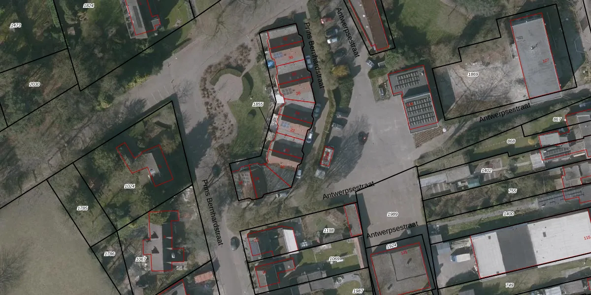 Prins Bernhardstraat 20 is gelegen op kadastraal perceel PTE00C1855. Deze kadastrale aanduiding is uniek en wordt gebruikt door het Kadaster om eigendomsrechten en andere zakelijke rechten vast te leggen. Het perceel maakt onderdeel uit van de kadastrale gemeente Putte.