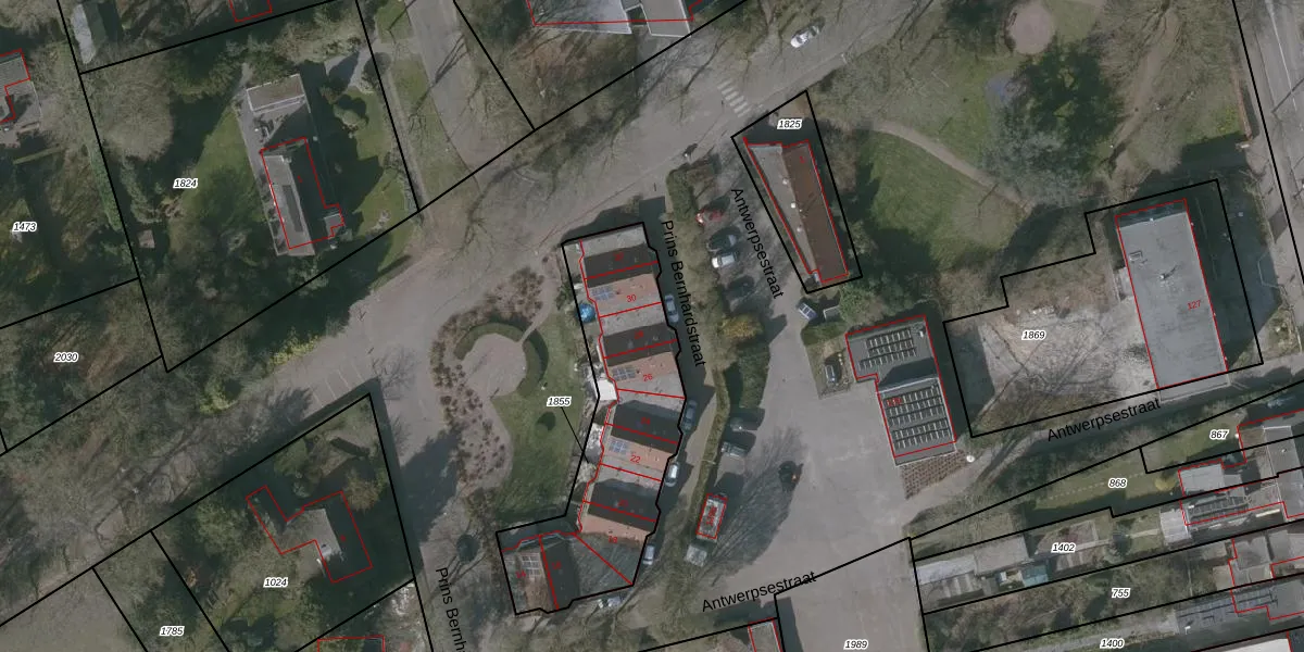 Prins Bernhardstraat 28 is gelegen op kadastraal perceel PTE00C1855. Deze kadastrale aanduiding is uniek en wordt gebruikt door het Kadaster om eigendomsrechten en andere zakelijke rechten vast te leggen. Het perceel maakt onderdeel uit van de kadastrale gemeente Putte.
