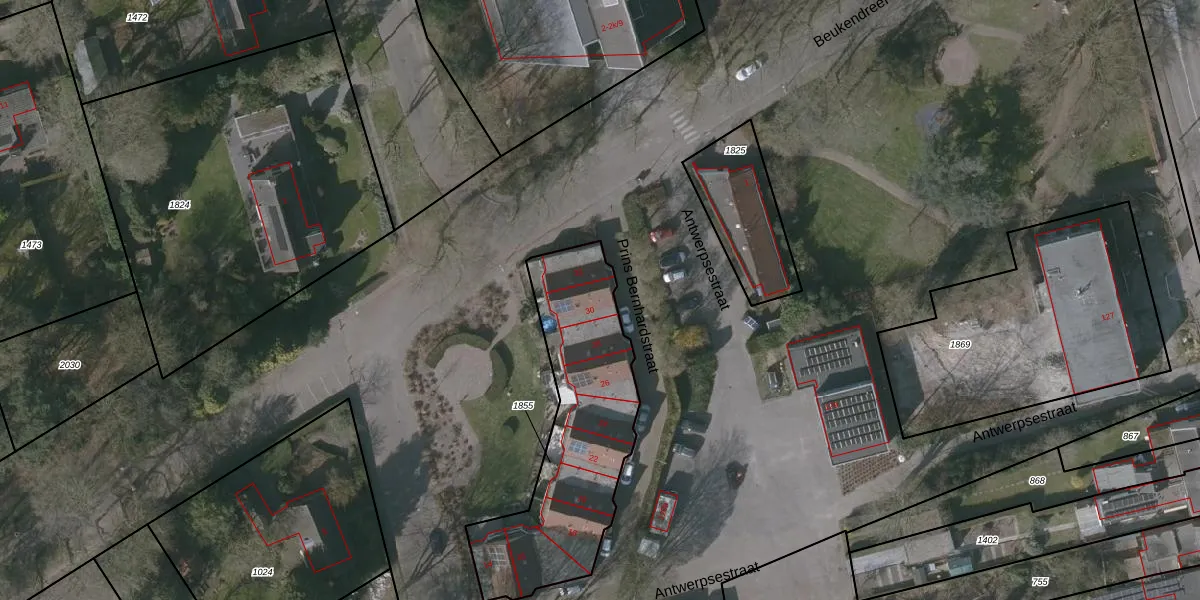 Prins Bernhardstraat 30 is gelegen op kadastraal perceel PTE00C1855. Deze kadastrale aanduiding is uniek en wordt gebruikt door het Kadaster om eigendomsrechten en andere zakelijke rechten vast te leggen. Het perceel maakt onderdeel uit van de kadastrale gemeente Putte.