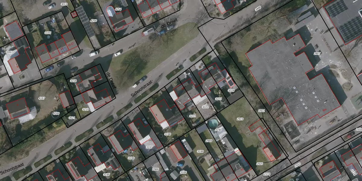 Schoolstraat 18 is gelegen op kadastraal perceel PTE00B3221. Deze kadastrale aanduiding is uniek en wordt gebruikt door het Kadaster om eigendomsrechten en andere zakelijke rechten vast te leggen. Het perceel maakt onderdeel uit van de kadastrale gemeente Putte.