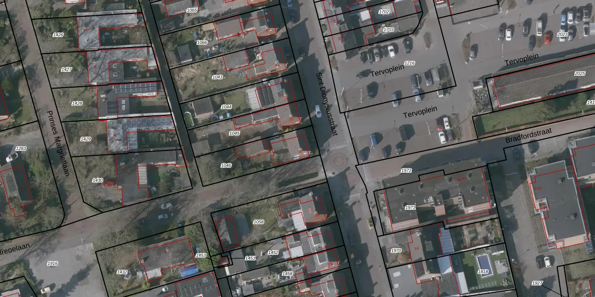 Het perceel waarop Sint Dionysiusstraat 35 staat heeft een oppervlakte van 409 m². Dit is een groot perceel. De perceeloppervlakte wordt geregistreerd door het Kadaster. Gedetailleerde informatie over de maten van dit perceel kunt u vinden in het rapport Kadastrale kaart met maatvoering van Sint Dionysiusstraat 35.