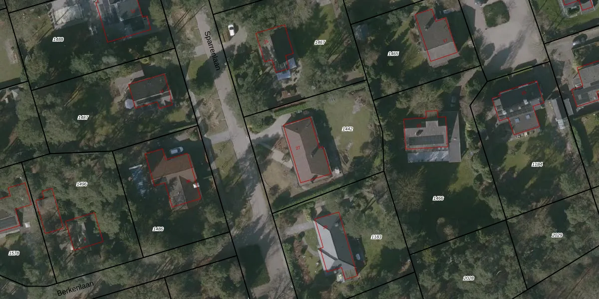 Sparrenlaan 27 is gelegen op kadastraal perceel PTE00C1442. Deze kadastrale aanduiding is uniek en wordt gebruikt door het Kadaster om eigendomsrechten en andere zakelijke rechten vast te leggen. Het perceel maakt onderdeel uit van de kadastrale gemeente Putte.