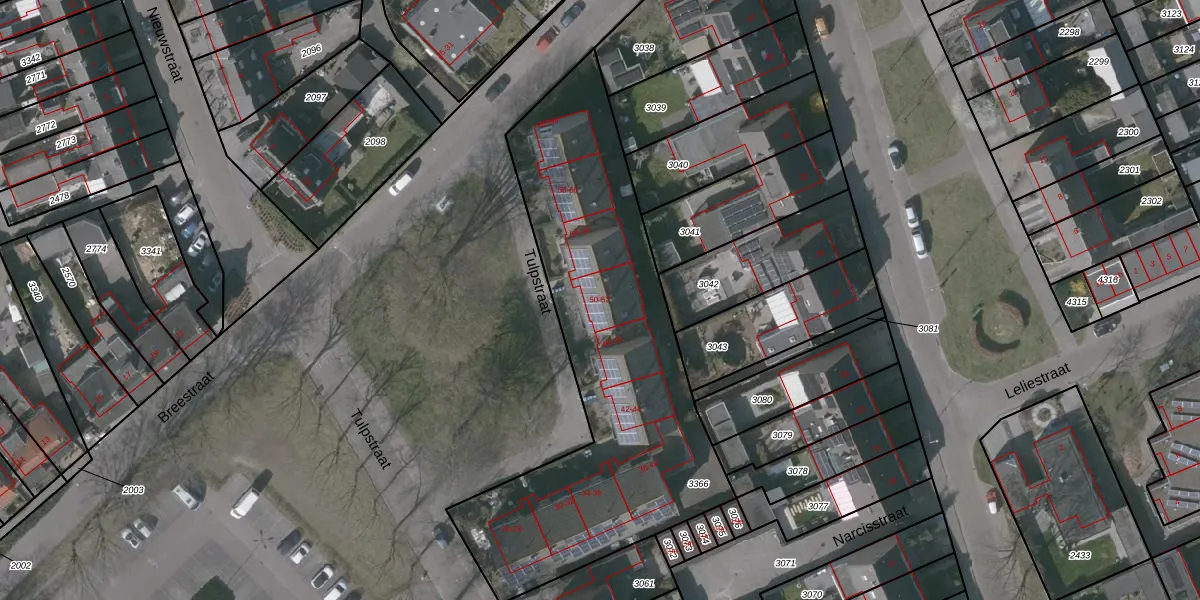 Het perceel waarop Tulpstraat 50 staat heeft een oppervlakte van 1835 m². Dit is een zeer groot perceel. De perceeloppervlakte wordt geregistreerd door het Kadaster. Gedetailleerde informatie over de maten van dit perceel kunt u vinden in het rapport Kadastrale kaart met maatvoering van Tulpstraat 50.