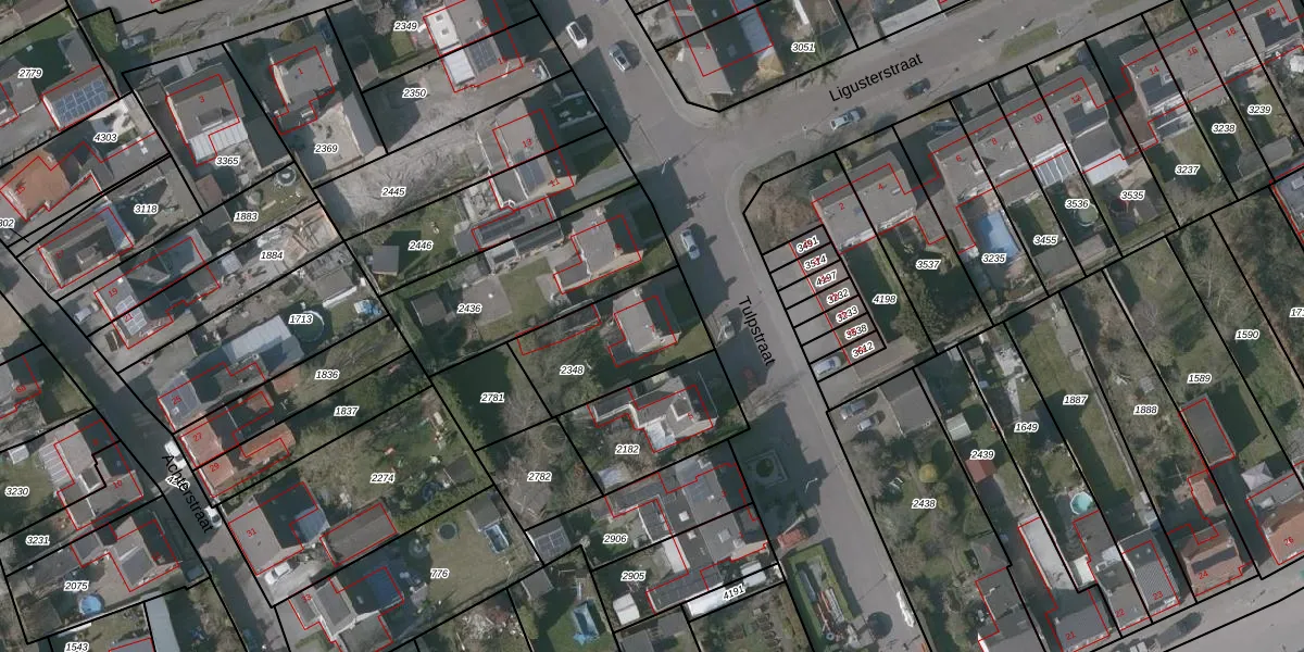 Gebruik de zoekbalk of klik op een perceel voor informatie over de adressen binnen dit perceel.