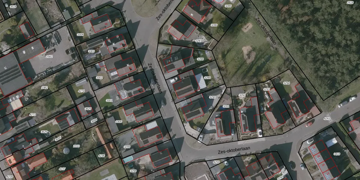 Zes-oktoberlaan 16 is gelegen op kadastraal perceel PTE00B3289. Deze kadastrale aanduiding is uniek en wordt gebruikt door het Kadaster om eigendomsrechten en andere zakelijke rechten vast te leggen. Het perceel maakt onderdeel uit van de kadastrale gemeente Putte.
