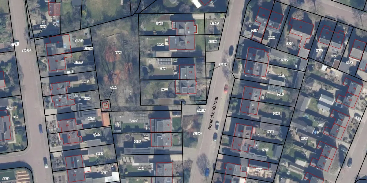 Het perceel waarop Abdinckhofstraat 11 staat heeft een oppervlakte van 475 m². Dit is een groot perceel. De perceeloppervlakte wordt geregistreerd door het Kadaster. Gedetailleerde informatie over de maten van dit perceel kunt u vinden in het rapport Kadastrale kaart met maatvoering van Abdinckhofstraat 11.