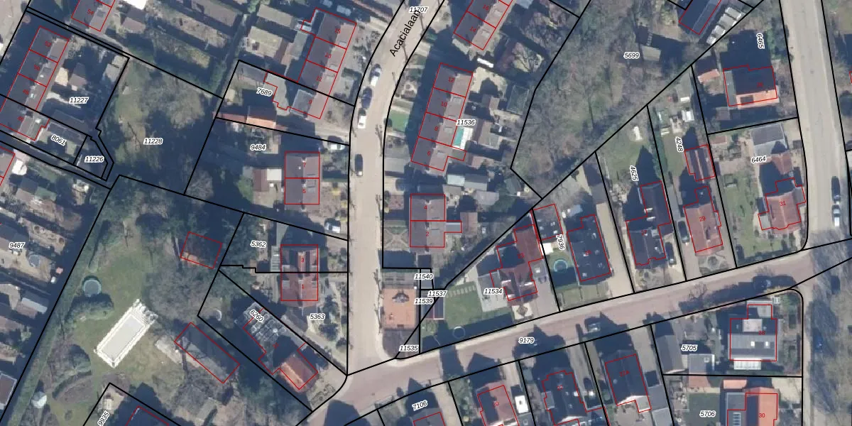 Het perceel waarop Acacialaan 4 staat heeft een oppervlakte van 2146 m². Dit is een zeer groot perceel. De perceeloppervlakte wordt geregistreerd door het Kadaster. Gedetailleerde informatie over de maten van dit perceel kunt u vinden in het rapport Kadastrale kaart met maatvoering van Acacialaan 4.