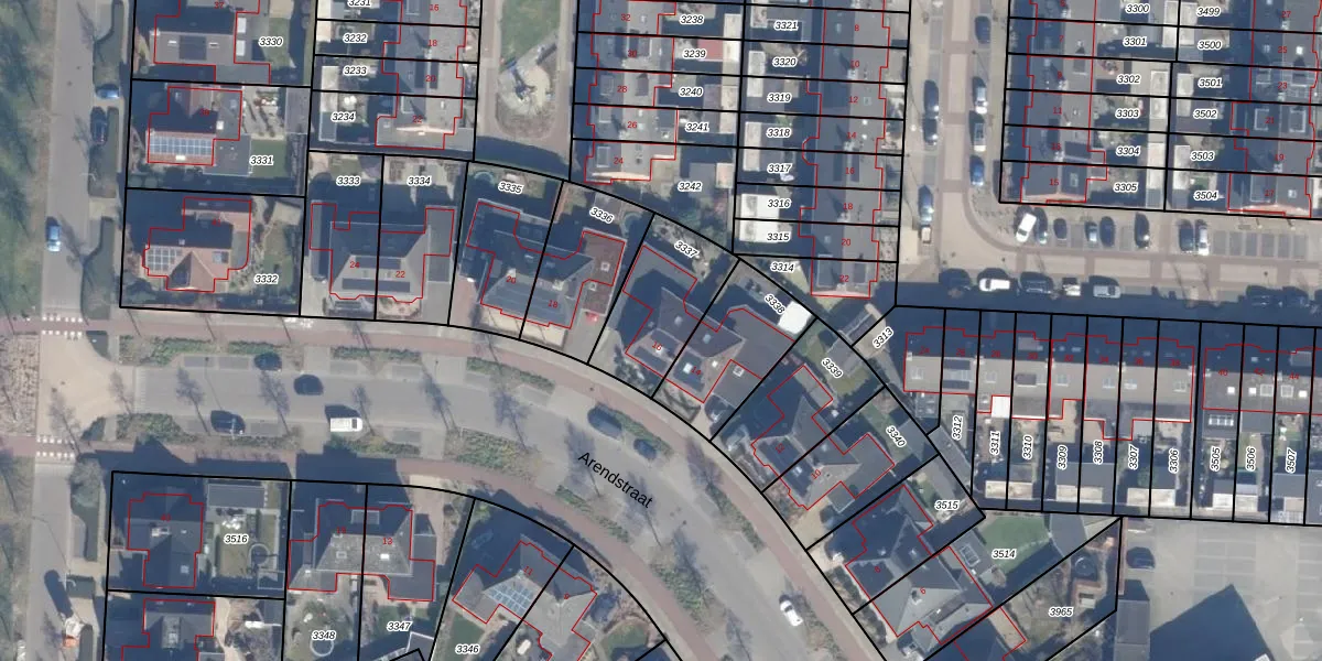 Het perceel waarop Arendstraat 16 staat heeft een oppervlakte van 321 m². Dit is een groot perceel. De perceeloppervlakte wordt geregistreerd door het Kadaster. Gedetailleerde informatie over de maten van dit perceel kunt u vinden in het rapport Kadastrale kaart met maatvoering van Arendstraat 16.