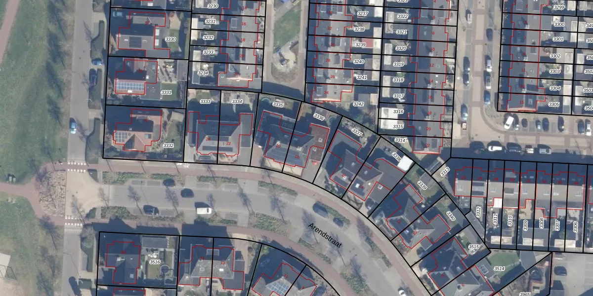 Het perceel waarop Arendstraat 18 staat heeft een oppervlakte van 321 m². Dit is een groot perceel. De perceeloppervlakte wordt geregistreerd door het Kadaster. Gedetailleerde informatie over de maten van dit perceel kunt u vinden in het rapport Kadastrale kaart met maatvoering van Arendstraat 18.