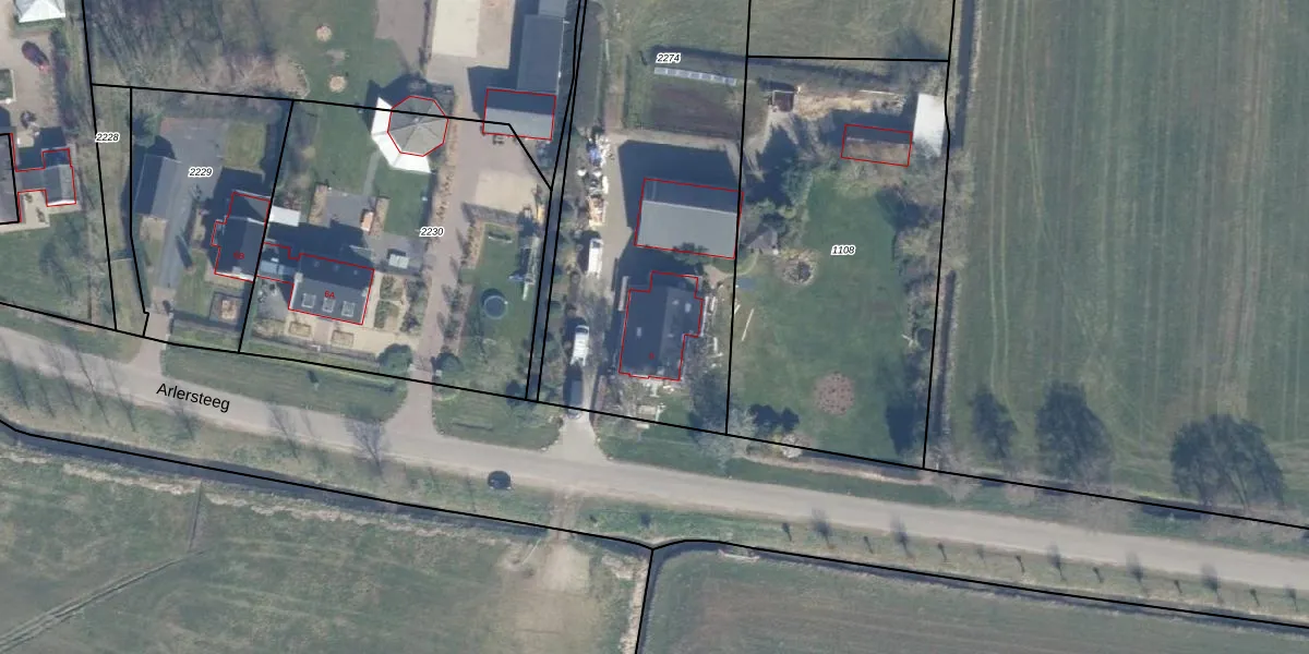Het perceel waarop Arlersteeg 6 staat heeft een oppervlakte van 3160 m². Dit is een zeer groot perceel. De perceeloppervlakte wordt geregistreerd door het Kadaster. Gedetailleerde informatie over de maten van dit perceel kunt u vinden in het rapport Kadastrale kaart met maatvoering van Arlersteeg 6.