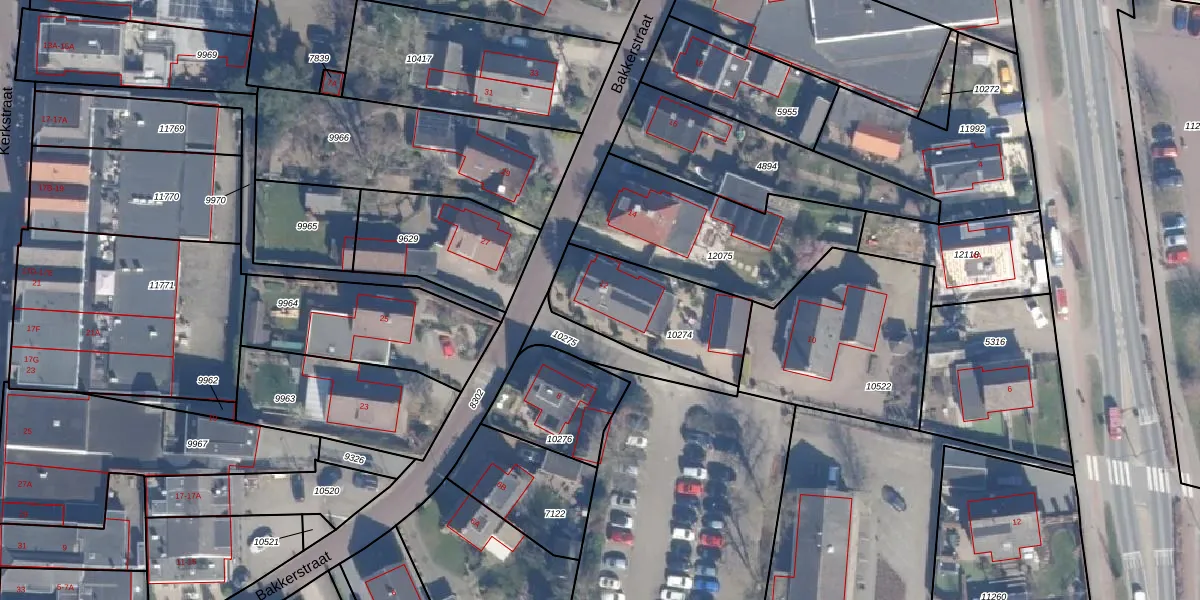 Bakkerstraat 12 is gelegen op kadastraal perceel PTN01C10274. Deze kadastrale aanduiding is uniek en wordt gebruikt door het Kadaster om eigendomsrechten en andere zakelijke rechten vast te leggen. Het perceel maakt onderdeel uit van de kadastrale gemeente Putten.