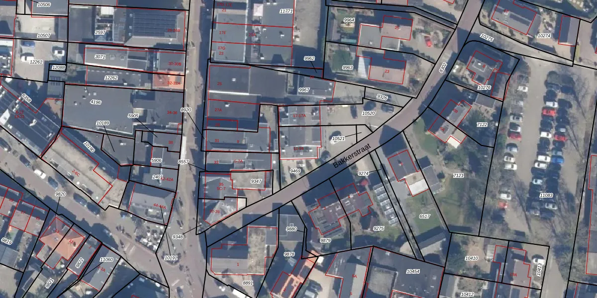 Het perceel waarop Bakkerstraat 13 staat heeft een oppervlakte van 353 m². Dit is een groot perceel. De perceeloppervlakte wordt geregistreerd door het Kadaster. Gedetailleerde informatie over de maten van dit perceel kunt u vinden in het rapport Kadastrale kaart met maatvoering van Bakkerstraat 13.