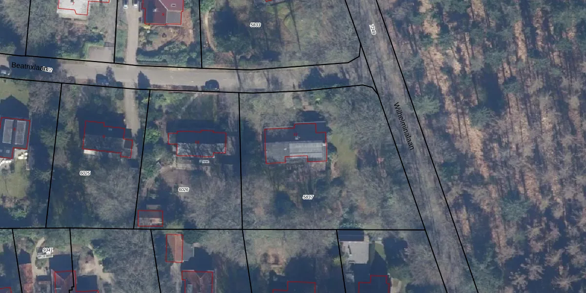 Het perceel waarop Beatrixlaan 12 staat heeft een oppervlakte van 2600 m². Dit is een zeer groot perceel. De perceeloppervlakte wordt geregistreerd door het Kadaster. Gedetailleerde informatie over de maten van dit perceel kunt u vinden in het rapport Kadastrale kaart met maatvoering van Beatrixlaan 12.