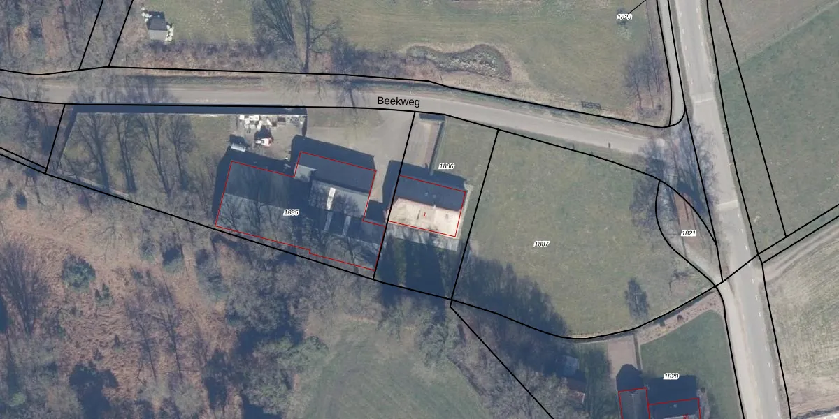Beekweg 1 is gelegen op kadastraal perceel PTN01B1886. Deze kadastrale aanduiding is uniek en wordt gebruikt door het Kadaster om eigendomsrechten en andere zakelijke rechten vast te leggen. Het perceel maakt onderdeel uit van de kadastrale gemeente Putten.
