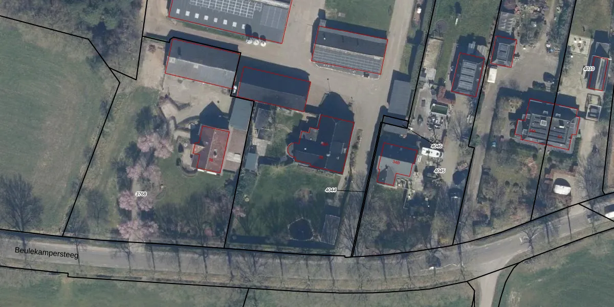 Het perceel waarop Beulekampersteeg 36-A staat heeft een oppervlakte van 1,7 ha. Dit is een zeer groot perceel. De perceeloppervlakte wordt geregistreerd door het Kadaster. Gedetailleerde informatie over de maten van dit perceel kunt u vinden in het rapport Kadastrale kaart met maatvoering van Beulekampersteeg 36-A.