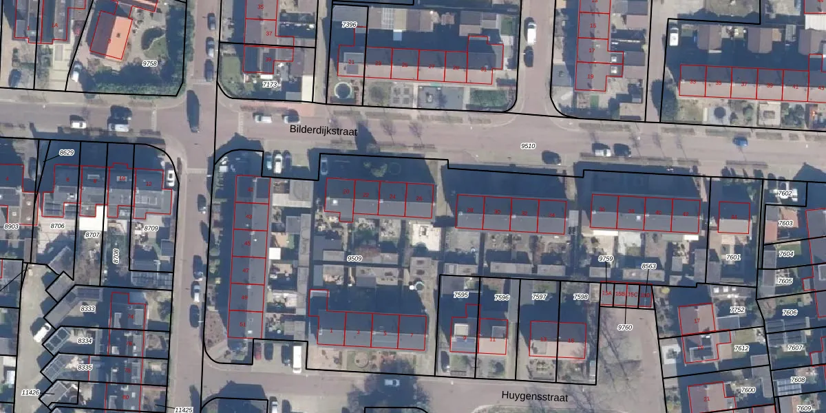 Het perceel waarop Bilderdijkstraat 26 staat heeft een oppervlakte van 4445 m². Dit is een zeer groot perceel. De perceeloppervlakte wordt geregistreerd door het Kadaster. Gedetailleerde informatie over de maten van dit perceel kunt u vinden in het rapport Kadastrale kaart met maatvoering van Bilderdijkstraat 26.
