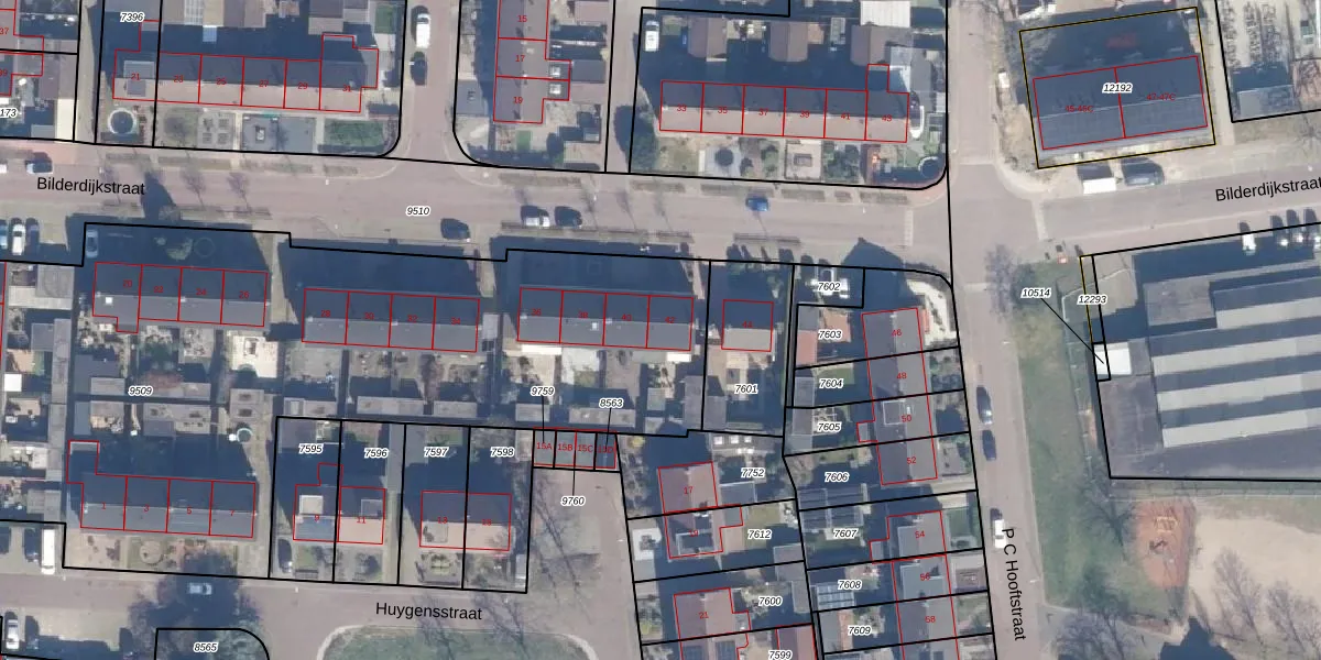 Het perceel waarop Bilderdijkstraat 42 staat heeft een oppervlakte van 4445 m². Dit is een zeer groot perceel. De perceeloppervlakte wordt geregistreerd door het Kadaster. Gedetailleerde informatie over de maten van dit perceel kunt u vinden in het rapport Kadastrale kaart met maatvoering van Bilderdijkstraat 42.
