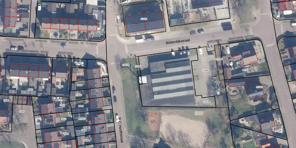 Het perceel waarop Bilderdijkstraat 46-G staat heeft een oppervlakte van 1441 m². Dit is een zeer groot perceel. De perceeloppervlakte wordt geregistreerd door het Kadaster. Gedetailleerde informatie over de maten van dit perceel kunt u vinden in het rapport Kadastrale kaart met maatvoering van Bilderdijkstraat 46-G.
