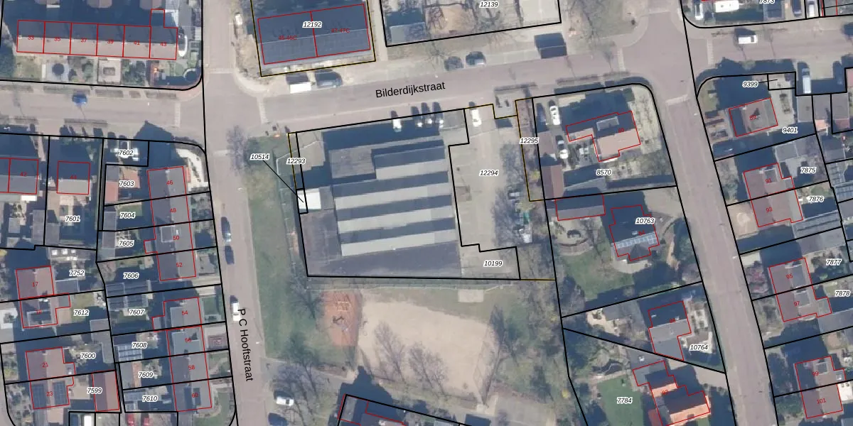 Het perceel waarop Bilderdijkstraat 48-H staat heeft een oppervlakte van 1441 m². Dit is een zeer groot perceel. De perceeloppervlakte wordt geregistreerd door het Kadaster. Gedetailleerde informatie over de maten van dit perceel kunt u vinden in het rapport Kadastrale kaart met maatvoering van Bilderdijkstraat 48-H.