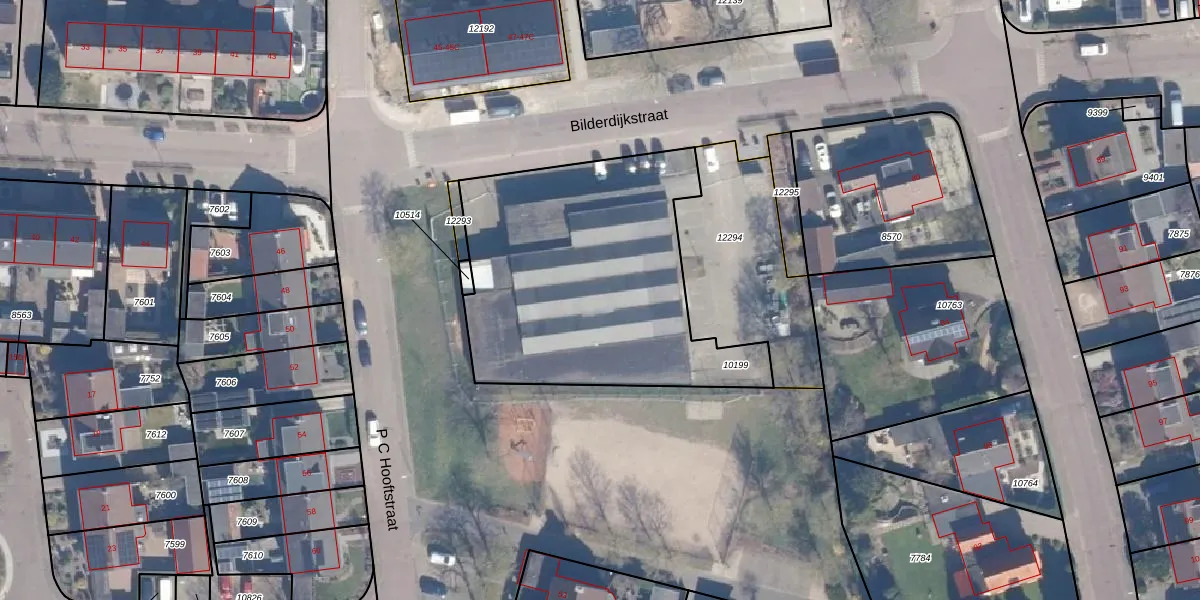 Het perceel waarop Bilderdijkstraat 48-J staat heeft een oppervlakte van 1441 m². Dit is een zeer groot perceel. De perceeloppervlakte wordt geregistreerd door het Kadaster. Gedetailleerde informatie over de maten van dit perceel kunt u vinden in het rapport Kadastrale kaart met maatvoering van Bilderdijkstraat 48-J.