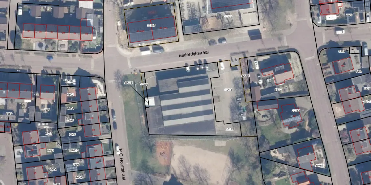 Het perceel waarop Bilderdijkstraat 48-M staat heeft een oppervlakte van 1441 m². Dit is een zeer groot perceel. De perceeloppervlakte wordt geregistreerd door het Kadaster. Gedetailleerde informatie over de maten van dit perceel kunt u vinden in het rapport Kadastrale kaart met maatvoering van Bilderdijkstraat 48-M.