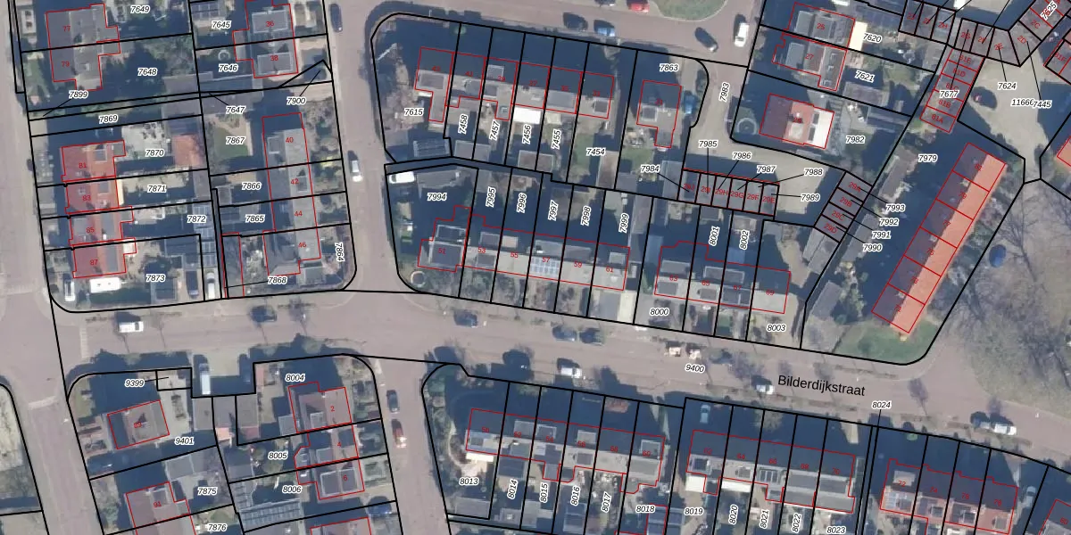 Gebruik de zoekbalk of klik op een perceel voor informatie over de adressen binnen dit perceel.