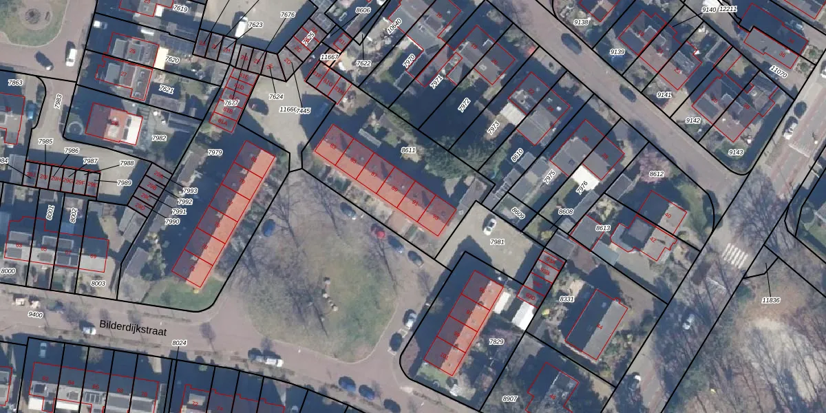 Het perceel waarop Bilderdijkstraat 91 staat heeft een oppervlakte van 1035 m². Dit is een zeer groot perceel. De perceeloppervlakte wordt geregistreerd door het Kadaster. Gedetailleerde informatie over de maten van dit perceel kunt u vinden in het rapport Kadastrale kaart met maatvoering van Bilderdijkstraat 91.