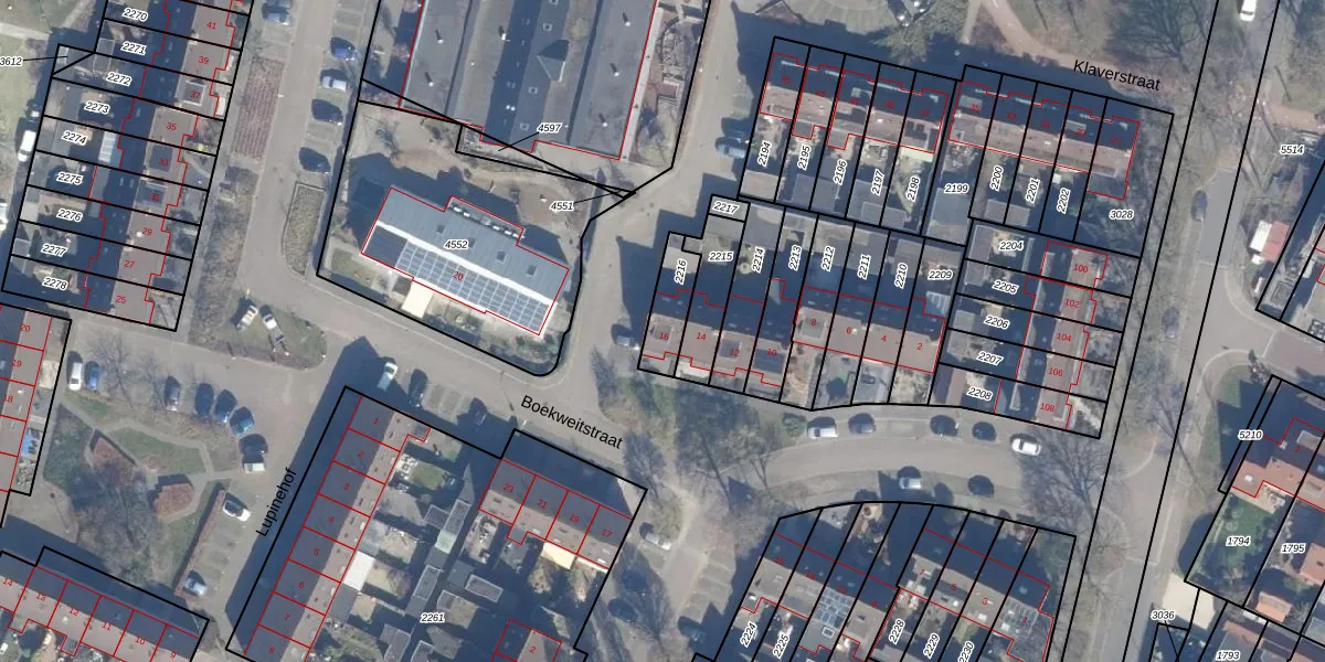 Gebruik de zoekbalk of klik op een perceel voor informatie over de adressen binnen dit perceel.