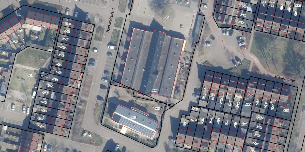 Gebruik de zoekbalk of klik op een perceel voor informatie over de adressen binnen dit perceel.