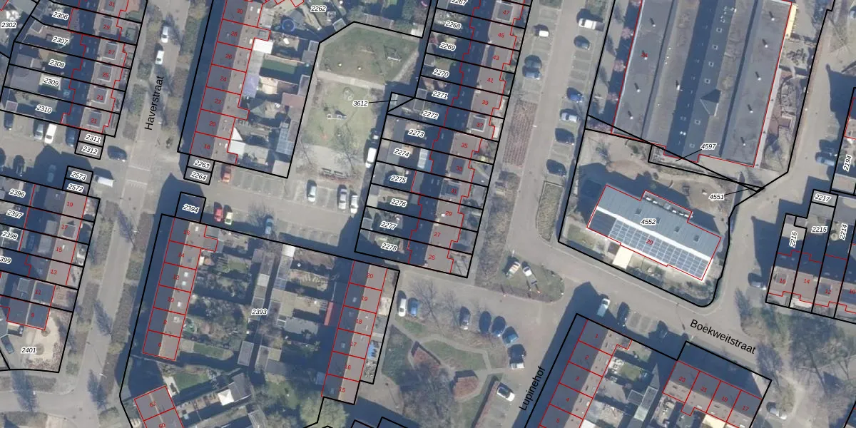 Gebruik de zoekbalk of klik op een perceel voor informatie over de adressen binnen dit perceel.