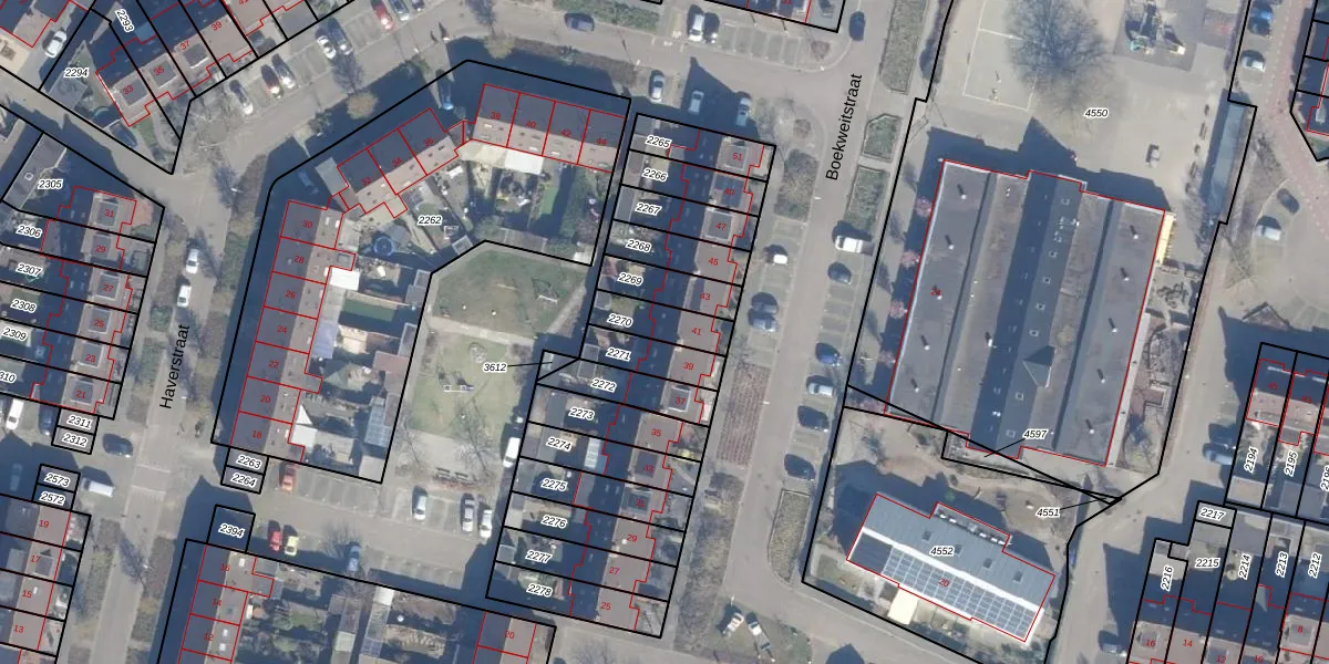 Gebruik de zoekbalk of klik op een perceel voor informatie over de adressen binnen dit perceel.
