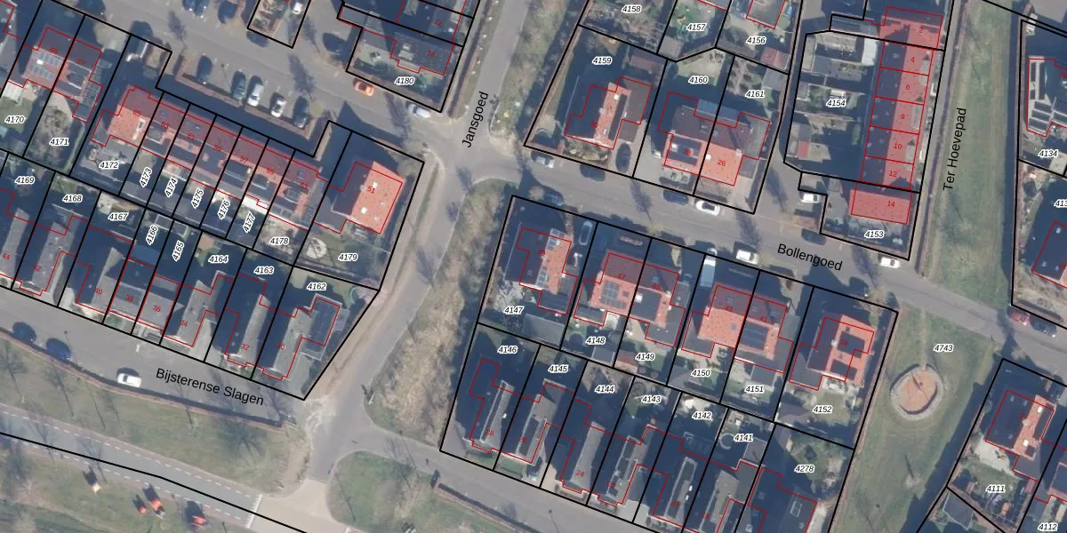 Het perceel waarop Bollengoed 49 staat heeft een oppervlakte van 414 m². Dit is een groot perceel. De perceeloppervlakte wordt geregistreerd door het Kadaster. Gedetailleerde informatie over de maten van dit perceel kunt u vinden in het rapport Kadastrale kaart met maatvoering van Bollengoed 49.
