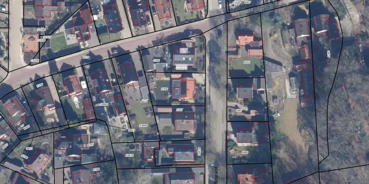 Het perceel waarop Bosrand 30 staat heeft een oppervlakte van 556 m². Dit is een groot perceel. De perceeloppervlakte wordt geregistreerd door het Kadaster. Gedetailleerde informatie over de maten van dit perceel kunt u vinden in het rapport Kadastrale kaart met maatvoering van Bosrand 30.