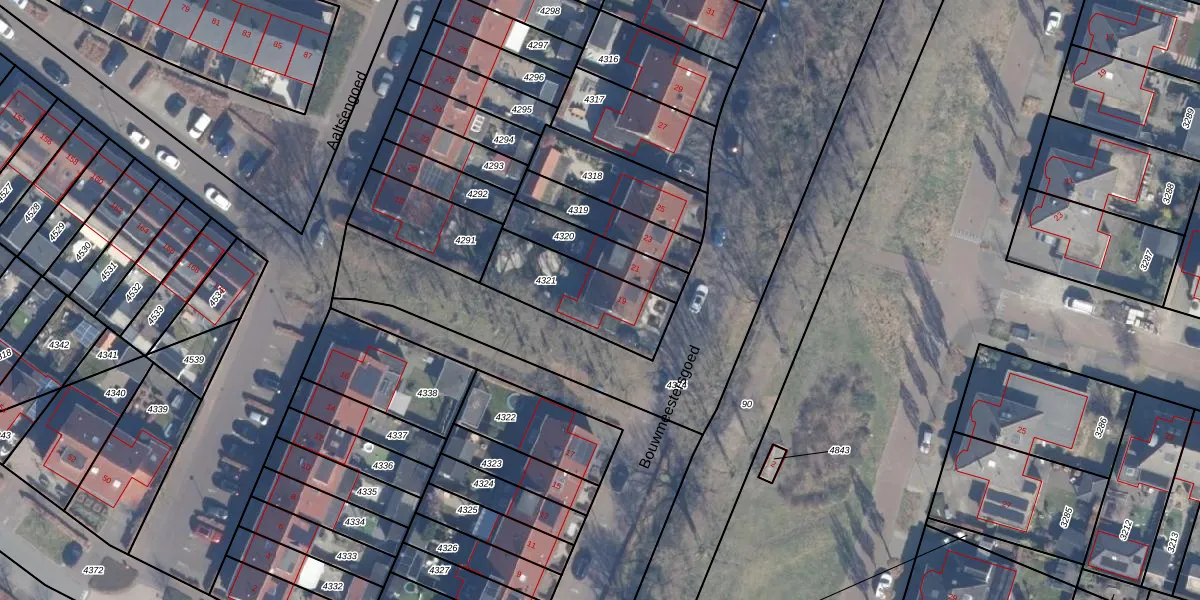 Het perceel waarop Bouwmeestersgoed 19 staat heeft een oppervlakte van 320 m². Dit is een groot perceel. De perceeloppervlakte wordt geregistreerd door het Kadaster. Gedetailleerde informatie over de maten van dit perceel kunt u vinden in het rapport Kadastrale kaart met maatvoering van Bouwmeestersgoed 19.