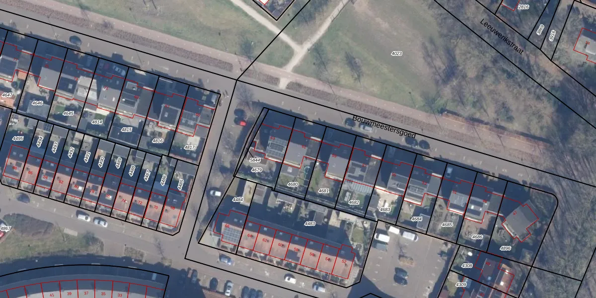 Het perceel waarop Bouwmeestersgoed 61 staat heeft een oppervlakte van 272 m². Dit is een middelgroot perceel. De perceeloppervlakte wordt geregistreerd door het Kadaster. Gedetailleerde informatie over de maten van dit perceel kunt u vinden in het rapport Kadastrale kaart met maatvoering van Bouwmeestersgoed 61.