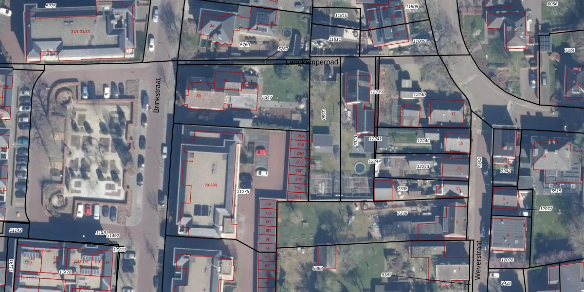 Het perceel waarop Brinkstraat 20-B staat heeft een oppervlakte van 1697 m². Dit is een zeer groot perceel. De perceeloppervlakte wordt geregistreerd door het Kadaster. Gedetailleerde informatie over de maten van dit perceel kunt u vinden in het rapport Kadastrale kaart met maatvoering van Brinkstraat 20-B.