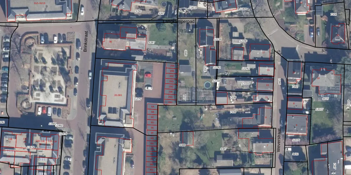 Het perceel waarop Brinkstraat 20-E staat heeft een oppervlakte van 1697 m². Dit is een zeer groot perceel. De perceeloppervlakte wordt geregistreerd door het Kadaster. Gedetailleerde informatie over de maten van dit perceel kunt u vinden in het rapport Kadastrale kaart met maatvoering van Brinkstraat 20-E.
