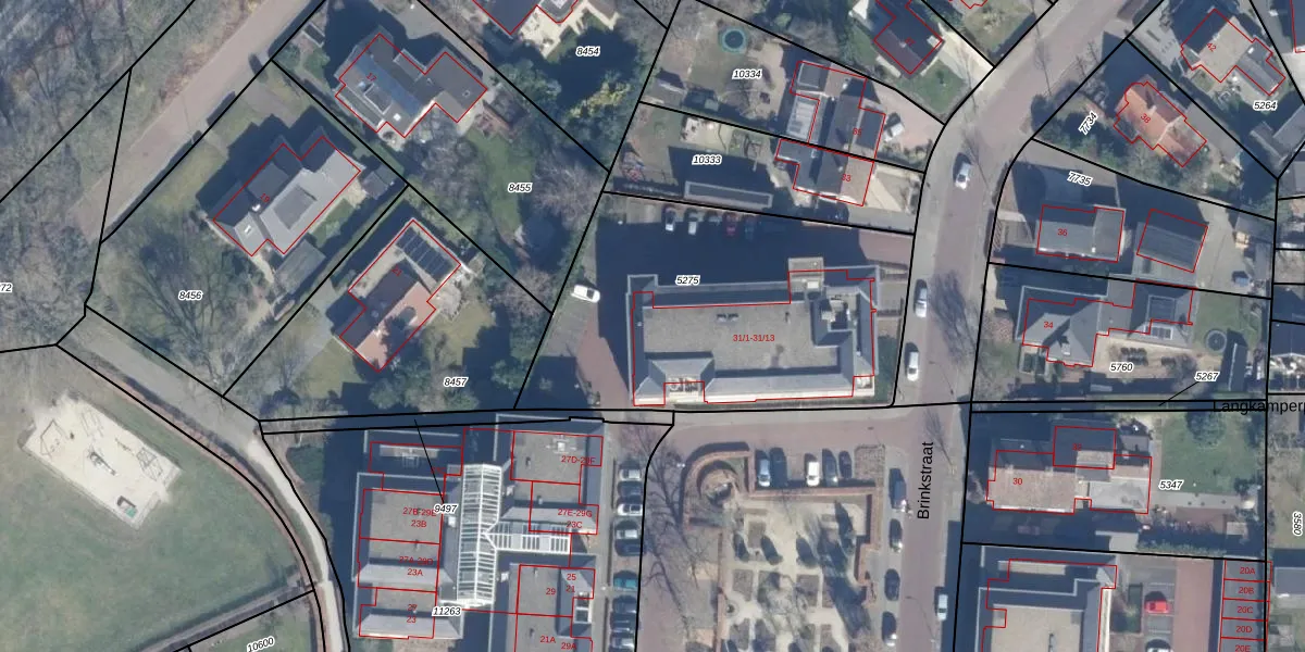 Het perceel waarop Brinkstraat 31-13 staat heeft een oppervlakte van 1620 m². Dit is een zeer groot perceel. De perceeloppervlakte wordt geregistreerd door het Kadaster. Gedetailleerde informatie over de maten van dit perceel kunt u vinden in het rapport Kadastrale kaart met maatvoering van Brinkstraat 31-13.