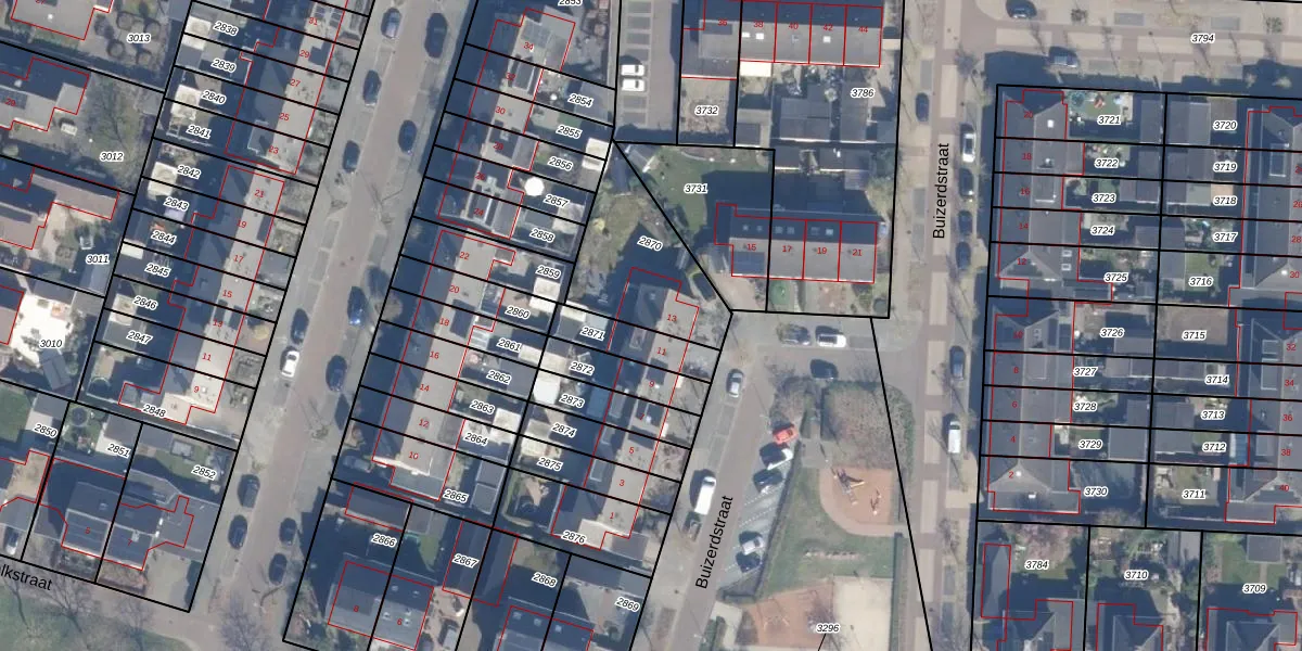 Het perceel waarop Buizerdstraat 13 staat heeft een oppervlakte van 401 m². Dit is een groot perceel. De perceeloppervlakte wordt geregistreerd door het Kadaster. Gedetailleerde informatie over de maten van dit perceel kunt u vinden in het rapport Kadastrale kaart met maatvoering van Buizerdstraat 13.