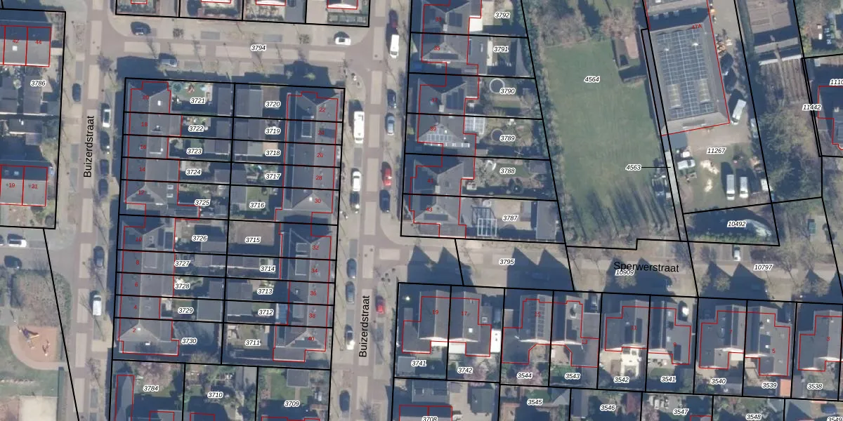 Buizerdstraat 43 is gelegen op kadastraal perceel PTN01N3787. Deze kadastrale aanduiding is uniek en wordt gebruikt door het Kadaster om eigendomsrechten en andere zakelijke rechten vast te leggen. Het perceel maakt onderdeel uit van de kadastrale gemeente Putten.
