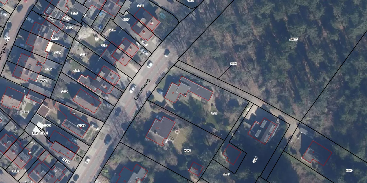 Het perceel waarop Calcariaweg 9 staat heeft een oppervlakte van 1155 m². Dit is een zeer groot perceel. De perceeloppervlakte wordt geregistreerd door het Kadaster. Gedetailleerde informatie over de maten van dit perceel kunt u vinden in het rapport Kadastrale kaart met maatvoering van Calcariaweg 9.