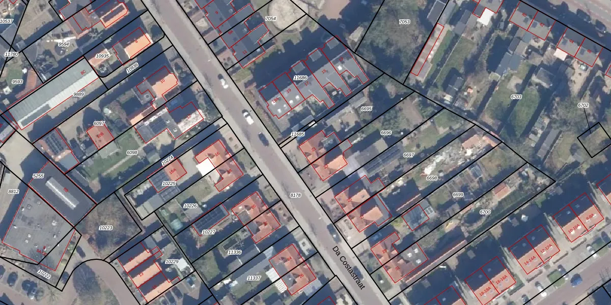 Gebruik de zoekbalk of klik op een perceel voor informatie over de adressen binnen dit perceel.