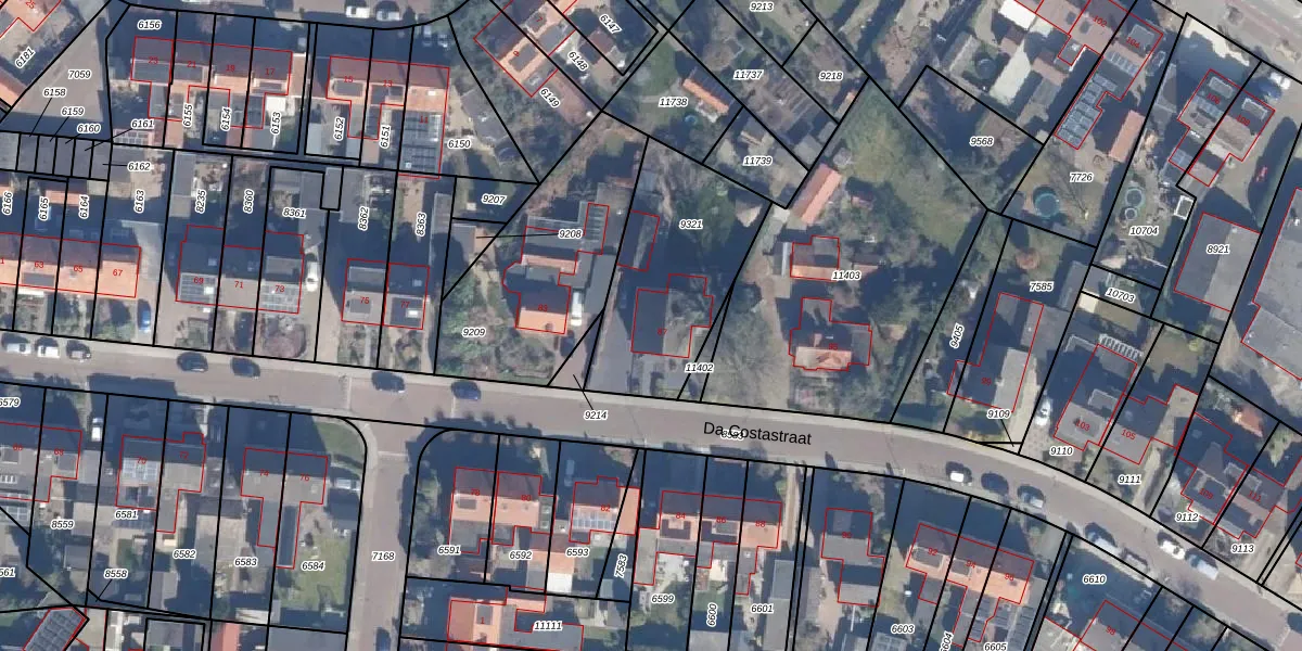 Het perceel waarop Da Costastraat 87 staat heeft een oppervlakte van 652 m². Dit is een groot perceel. De perceeloppervlakte wordt geregistreerd door het Kadaster. Gedetailleerde informatie over de maten van dit perceel kunt u vinden in het rapport Kadastrale kaart met maatvoering van Da Costastraat 87.