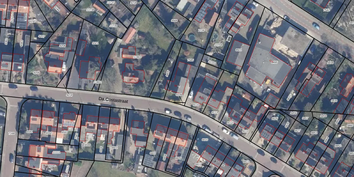 Da Costastraat 99 is gelegen op kadastraal perceel PTN01C7585. Deze kadastrale aanduiding is uniek en wordt gebruikt door het Kadaster om eigendomsrechten en andere zakelijke rechten vast te leggen. Het perceel maakt onderdeel uit van de kadastrale gemeente Putten.