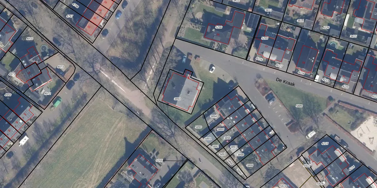 Het perceel waarop De Kraak 22 staat heeft een oppervlakte van 363 m². Dit is een groot perceel. De perceeloppervlakte wordt geregistreerd door het Kadaster. Gedetailleerde informatie over de maten van dit perceel kunt u vinden in het rapport Kadastrale kaart met maatvoering van De Kraak 22.