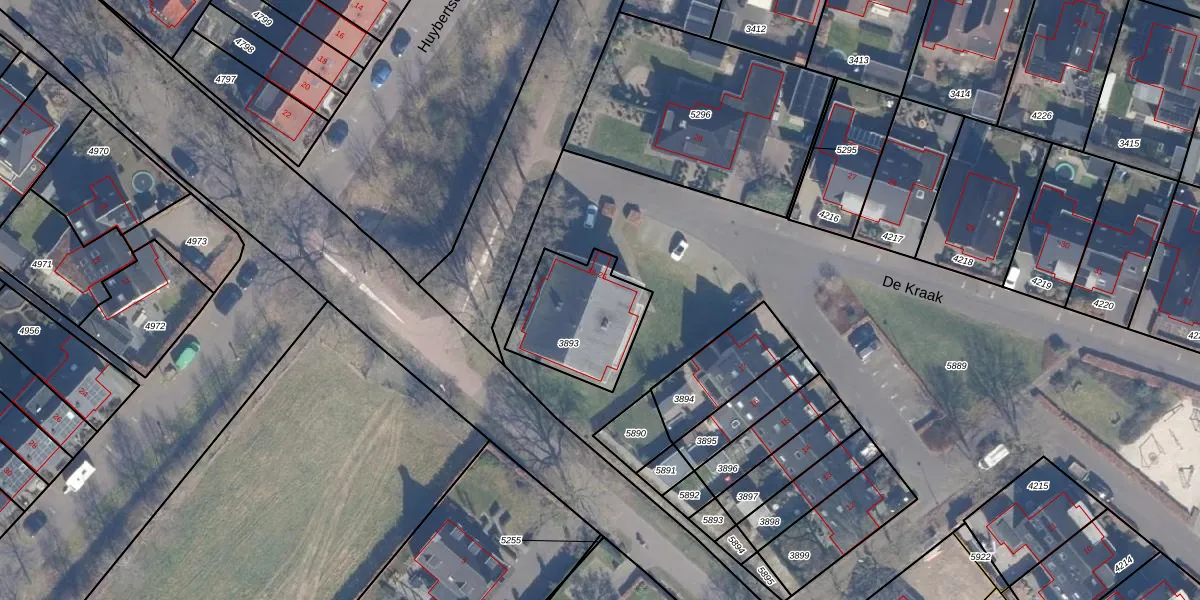 Het perceel waarop De Kraak 23 staat heeft een oppervlakte van 363 m². Dit is een groot perceel. De perceeloppervlakte wordt geregistreerd door het Kadaster. Gedetailleerde informatie over de maten van dit perceel kunt u vinden in het rapport Kadastrale kaart met maatvoering van De Kraak 23.