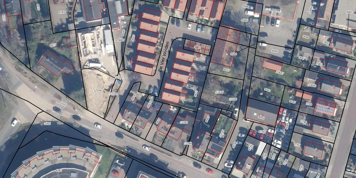 Het perceel waarop De Vier Winden 4 staat heeft een oppervlakte van 770 m². Dit is een groot perceel. De perceeloppervlakte wordt geregistreerd door het Kadaster. Gedetailleerde informatie over de maten van dit perceel kunt u vinden in het rapport Kadastrale kaart met maatvoering van De Vier Winden 4.